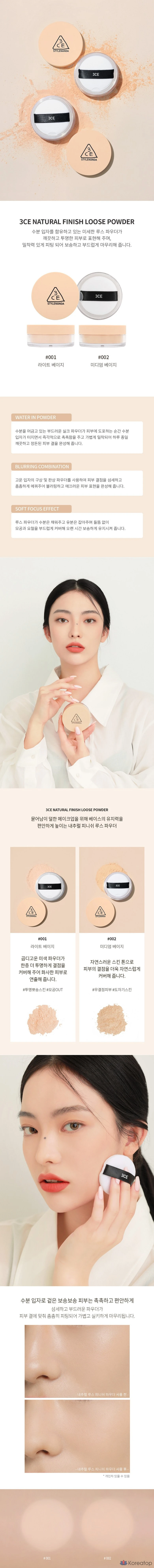 Рассыпчатая пудра 3CE Natural Finish, 001, 1 шт.