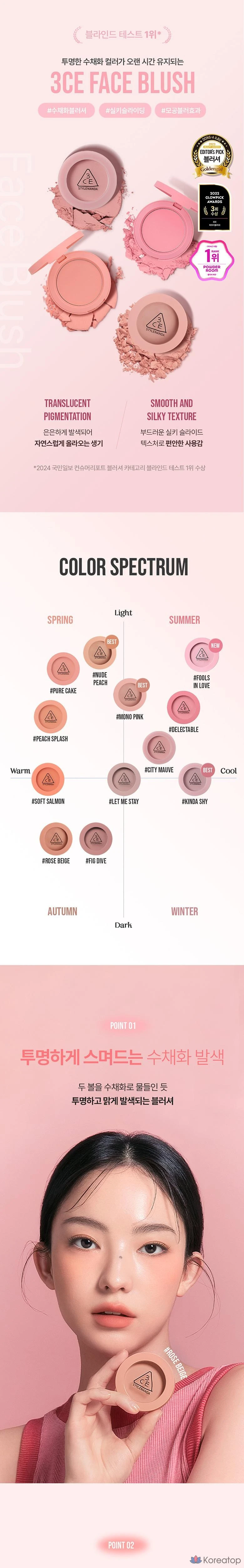 Румяна для лица 3CE Face Blush, 5 г, розовый монохром, 1 шт.