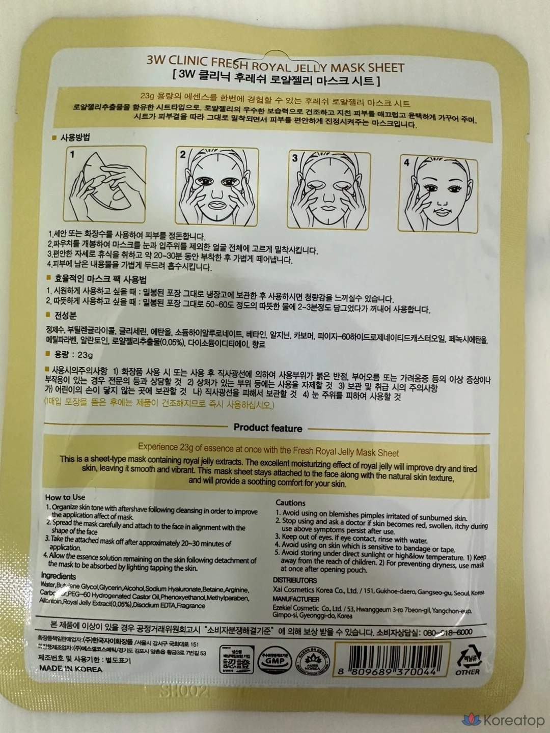 3W Clinic Маска-салфетка с маточным молочком, высокоадгезивная, для использования в холодных и тепловых условиях, 10 листов, Honeycomb Honey Dodo Cosmetics 3W Clinic Zai Cosmetics, 1 упаковка