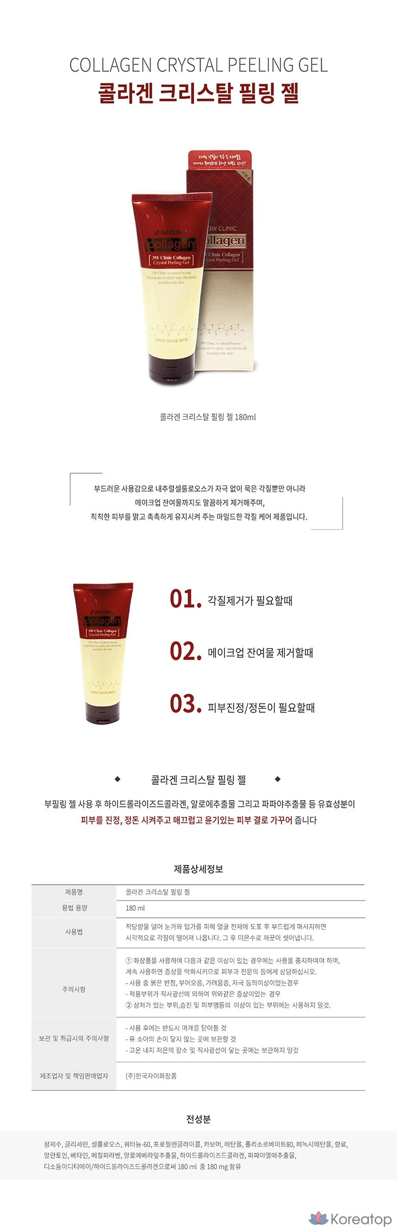 3W Clinic Коллагеновый кристаллический пилинг-гель, 1 шт., 180 мл