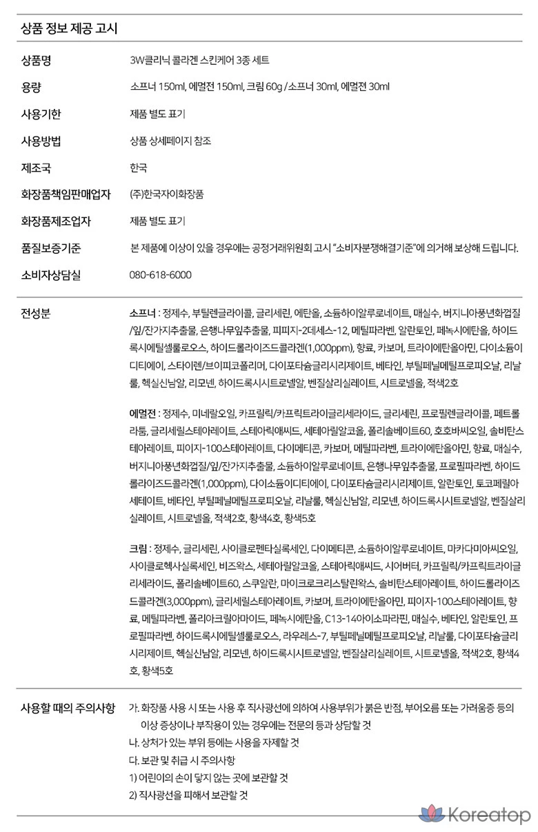 Набор из 3 предметов 3W Clinic Collagen Skincare, 1 комплект