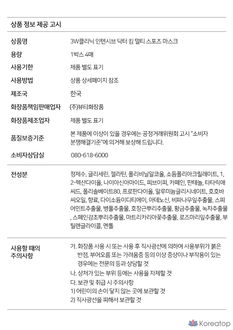 Набор спортивных масок 3W Clinic Intensive Dr. Kim Multi-Sport Mask Pack, 1 упаковка, 4 упаковки
