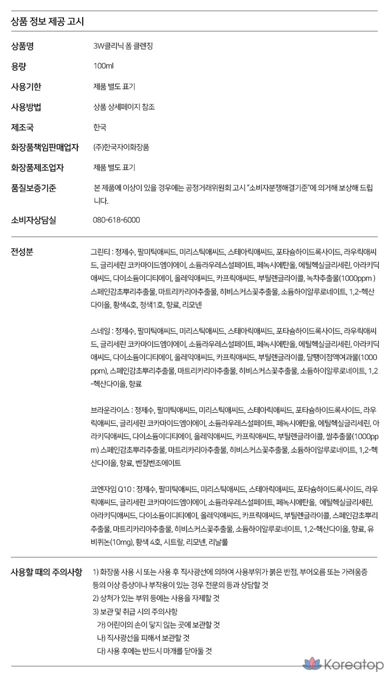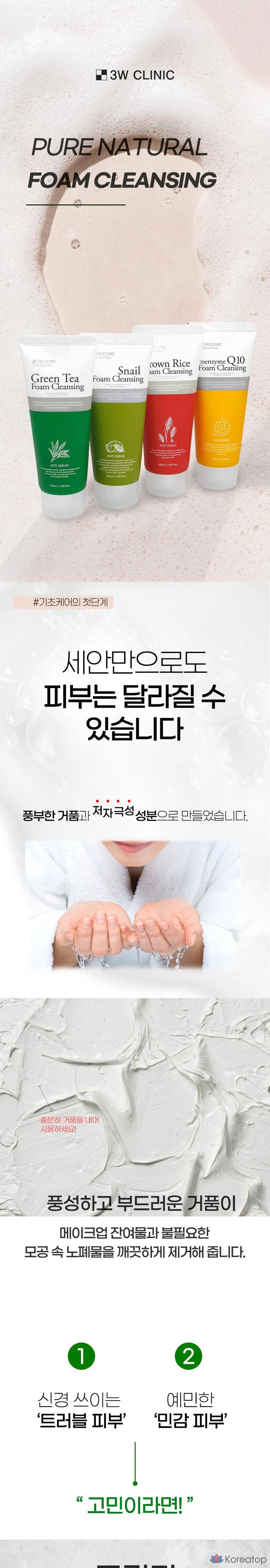 Очищающая пенка для лица 3W Clinic Pure Natural, 1 шт., 100 мл
