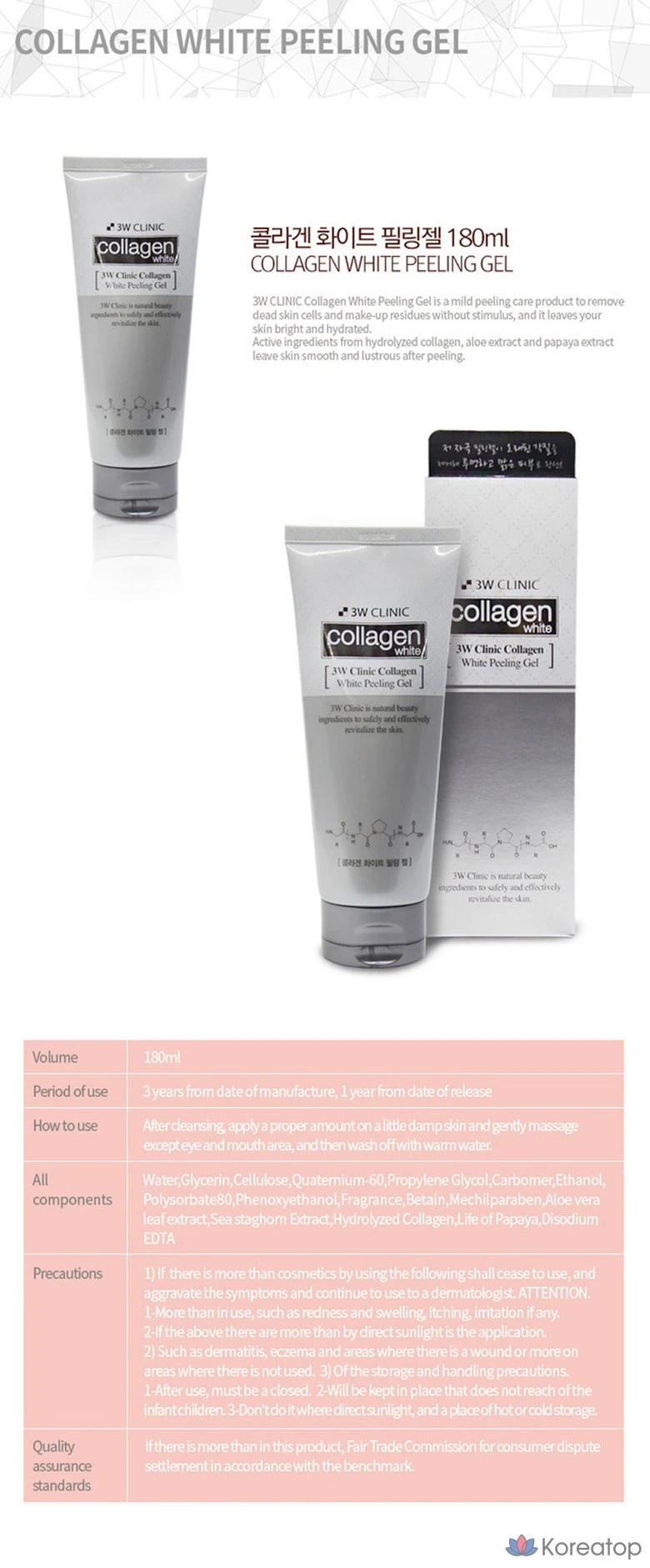 Отшелушивающий гель с коллагеном 3W Clinic Collagen White, 180 мл, 1 шт.