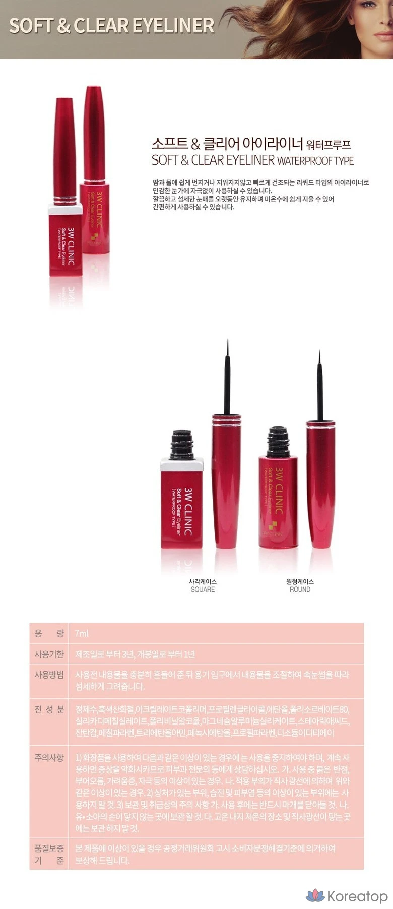 Подводка для глаз 3W Clinic Soft & Clear, 7 мл, круглый футляр, 1 шт.