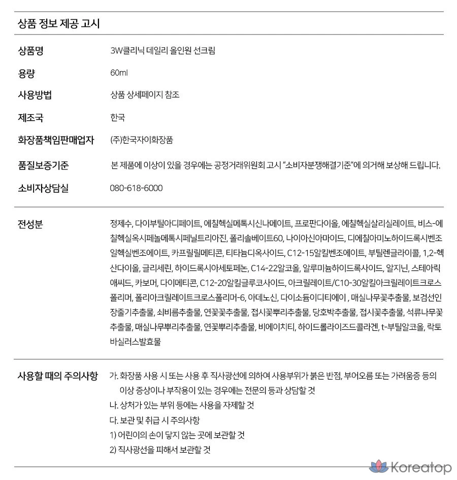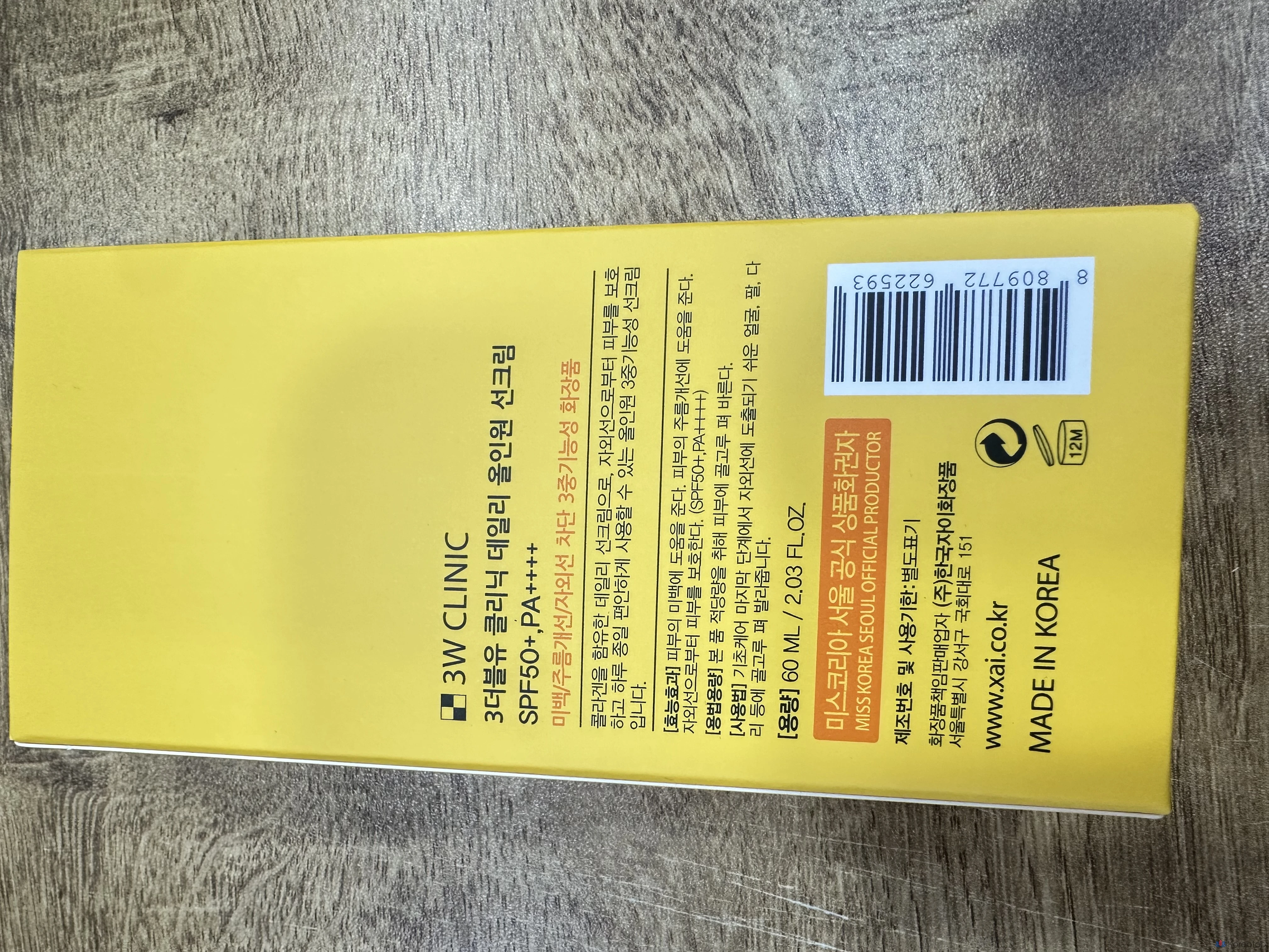 Солнцезащитный крем 3W Clinic Daily All-in-One SPF50+ PA++++, 1 шт., 60 мл
