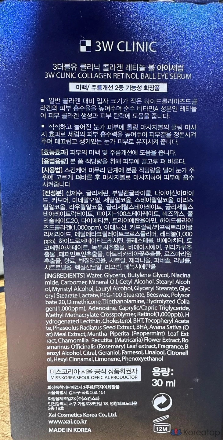 Сыворотка для глаз 3W Clinic Collagen Retinol Ball Eye Serum, 30 мл, 1 шт.