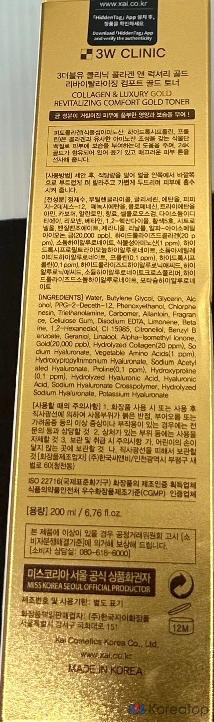 Тоник 3W Clinic Collagen & Luxury Gold Comfort Gold, 1 шт., 200 мл