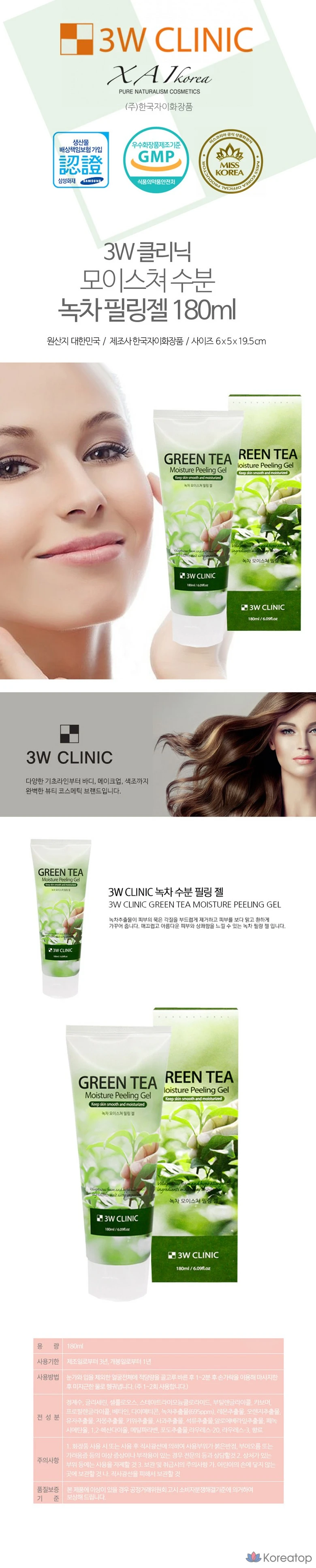 Увлажняющий пилинг-гель 3W Clinic с зеленым чаем, 180 мл, 1 шт.