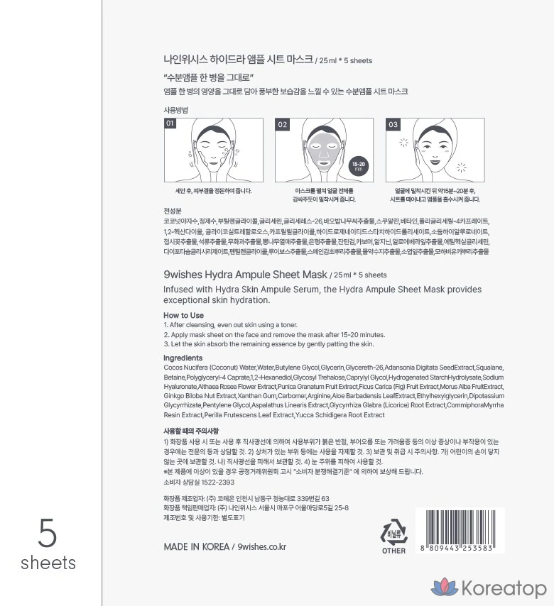 Тканевая маска для лица 9wishes Hydra Ampoule Sheet Mask, 25 мл, 5 шт.