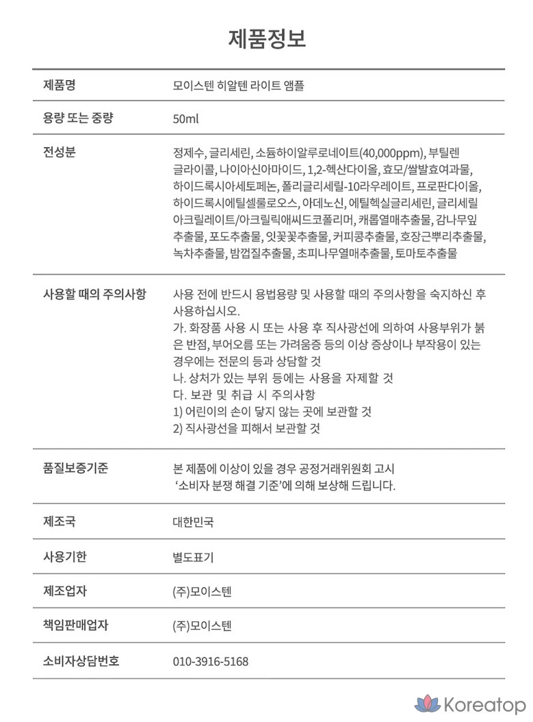 Ампульная сыворотка 9wishes Moisten Low Molecular Hyaluronic Acid Hyalten Light Ampoule, 50 мл, 1 шт.