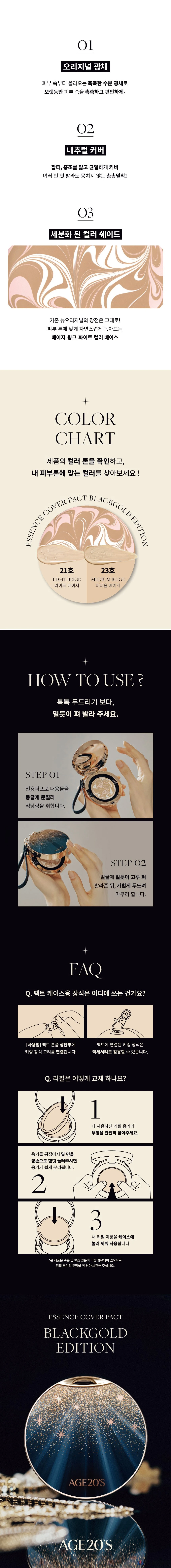 Откройте секрет безупречной кожи с эффектом «чок-чок»! Легендарный тональный кушон Age 20's Black Gold Edition — это не просто макияж, а 71% ухаживающей эссенции в формате крем-бальзама. Его уникальная текстура с «латте-артом» при соприкосновении с кожей тает, высвобождая увлажняющие компоненты и создавая идеально ровное, сияющее покрытие. Средство маскирует несовершенства, выравнивает тон и защищает от солнца благодаря высокому SPF 50+, не создавая эффекта маски. В составе — ниацинамид для сияния, аденозин для гладкости, а также комплекс из сквалана и керамидов для глубокого увлажнения. Результат — свежая, напитанная кожа с естественным влажным финишем в течение всего дня.