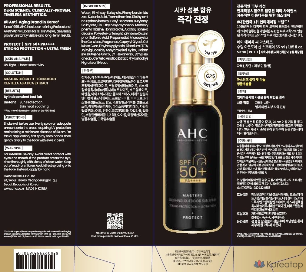 AHC Masters Успокаивающий солнцезащитный спрей для наружного применения SPF50+ PA++++, 1 шт, 55 мл