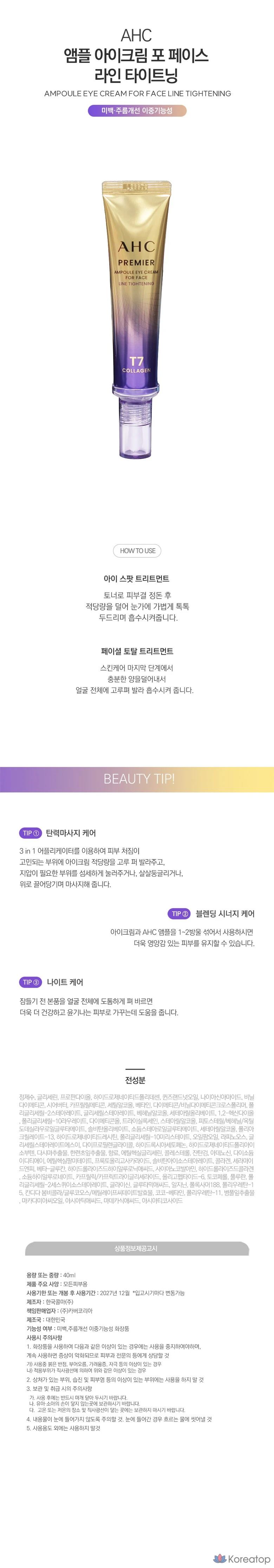 AHC Высокопитательный ампульный крем для век с коллагеном AHC Premier Ampoule Eye Cream For Face Line Tightening Collagen T7, 40 мл