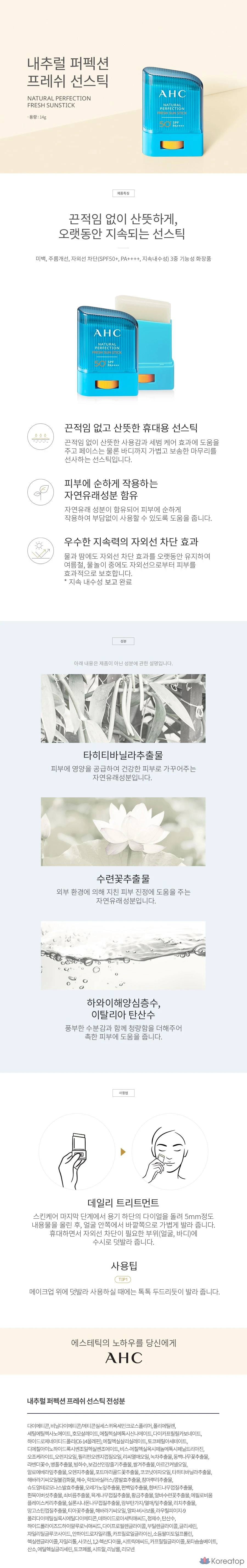 Солнцезащитный стик AHC Natural Perfection Fresh SPF50+ PA++++