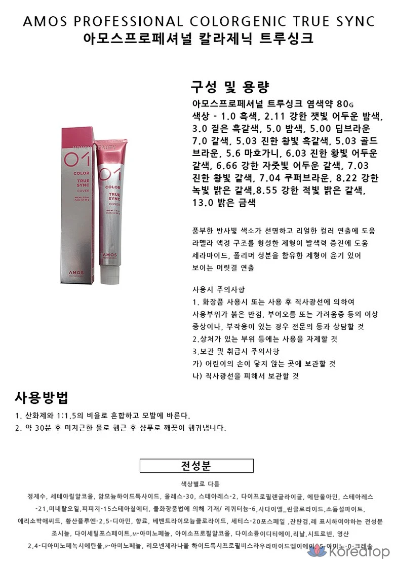 Краска для волос Amos Professional True Sync, оттенок 1.0 Black, 80 г, 1 шт.