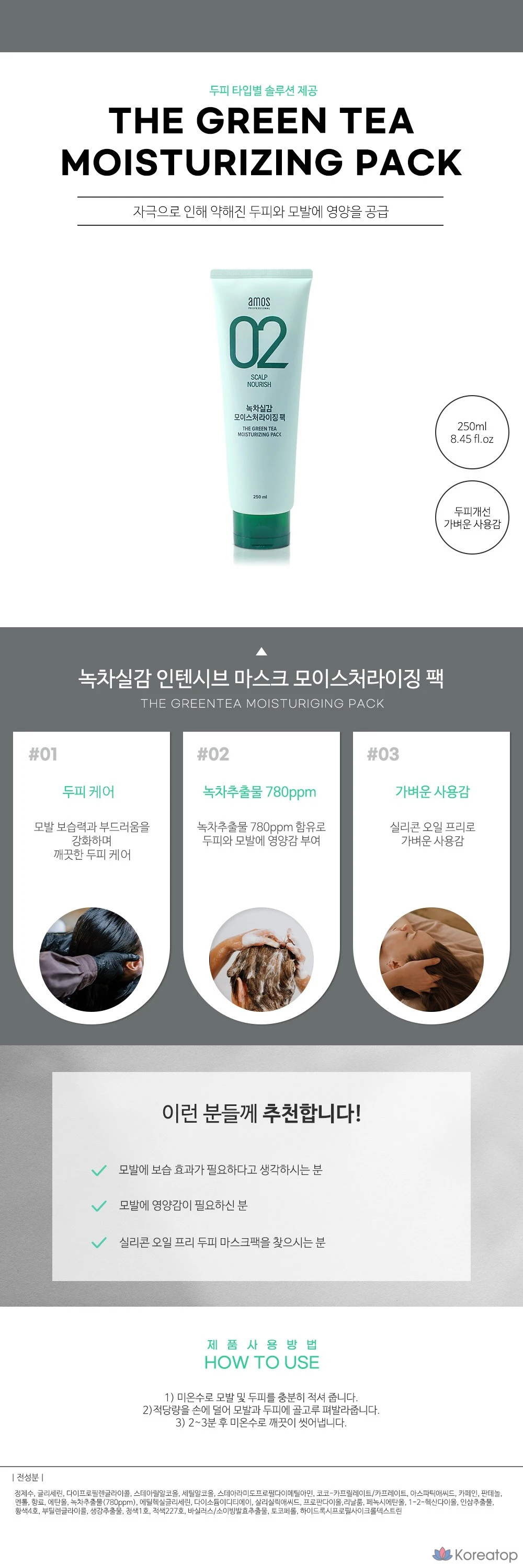 Подарите волосам и коже головы интенсивное увлажнение с профессиональной маской Amos Professional. Это не просто уход, а настоящая терапия для ослабленных и сухих волос. Кремовая текстура легко распределяется от корней до кончиков, окутывая их свежим ароматом зеленого чая и трав. Формула без силикона позволяет наносить маску прямо на кожу головы, успокаивая и укрепляя корни. Запатентованный комплекс Green Heritea™ на основе зеленого чая и кофеин целенаправленно работают против истончения волос, а пантенол и экстракт ферментированной сои возвращают прядям эластичность и здоровый блеск. Всего 3 минуты, и ваши волосы — заметно более плотные, мягкие и полные жизни.