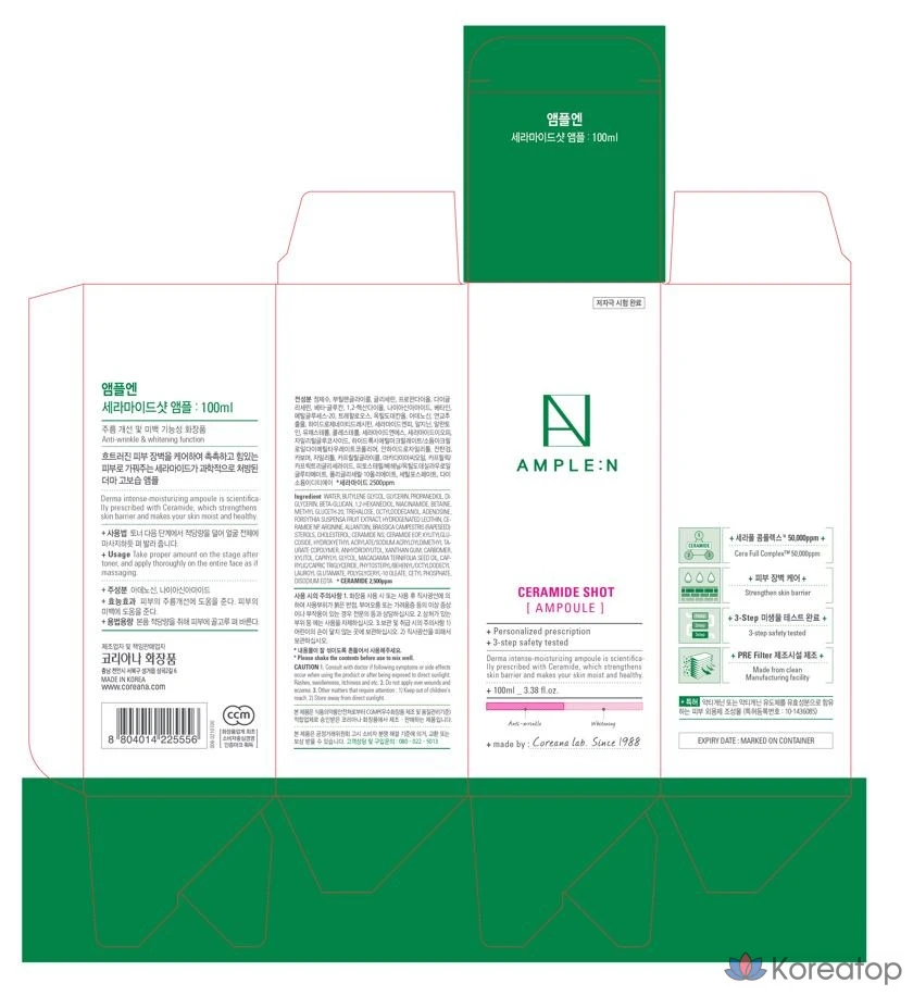 Набор ампул Koreana с пептидными шотами (емкость 100 мл) + ампул с керамидами (емкость 100 мл) + крем с керамидами (50 мл), 1 комплект.