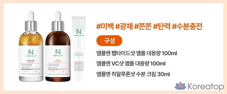 Набор из ампул AMPLE:N с пептидными шотами (емкость 100 мл) + ампул с VC-шотами (емкость 100 мл) + увлажняющий крем с гиалуроновой кислотой (30 мл), 1 комплект.