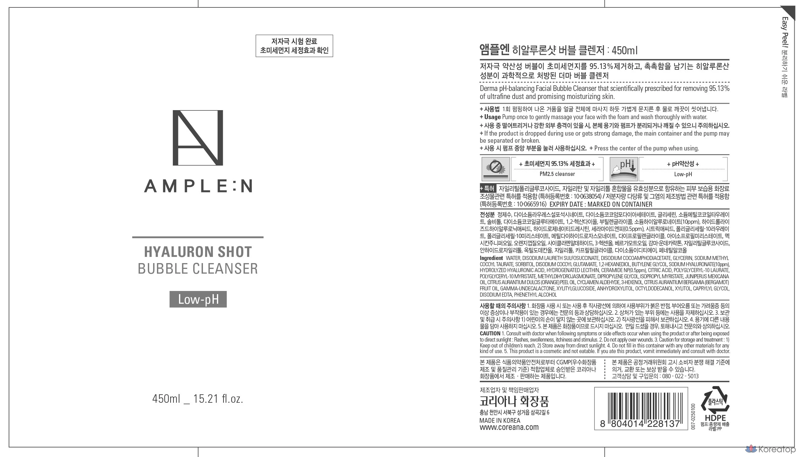 Очищающая пенка для лица с ампулами и гиалуроновой кислотой, 450 мл, 1 шт.