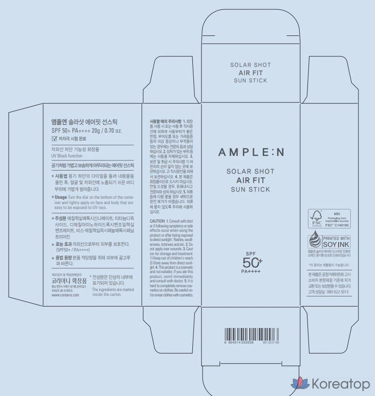 Солнцезащитный стик AMPLE:N Solar Shot Air Fit SPF50+ PA++++, 20 г, 1 шт.