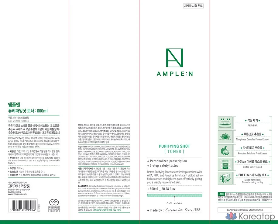 Тоник-ампуля и очищающий тоник AMPLE:N, 1 шт., 600 мл