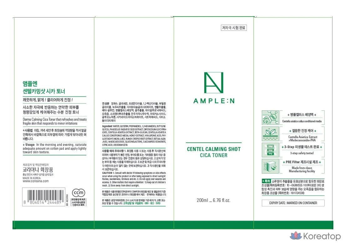 Тоник для лица Koreana Ample:N & Centel Calming Shot Cica, 1 шт., 200 мл