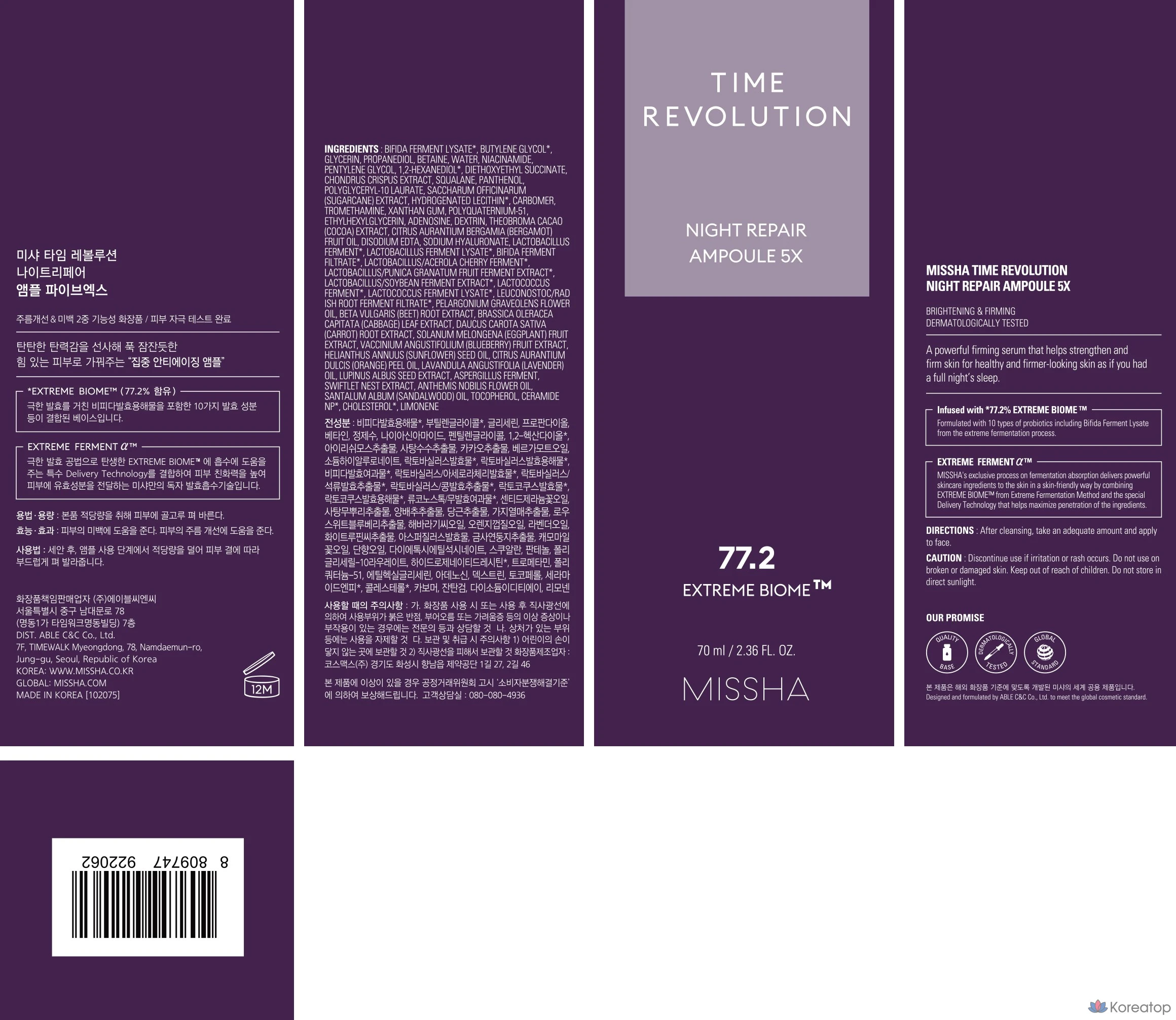 Ночное реабилитация Ампула для кожи Misha Time Revolution Night Tree Fair 5X, 70 мл