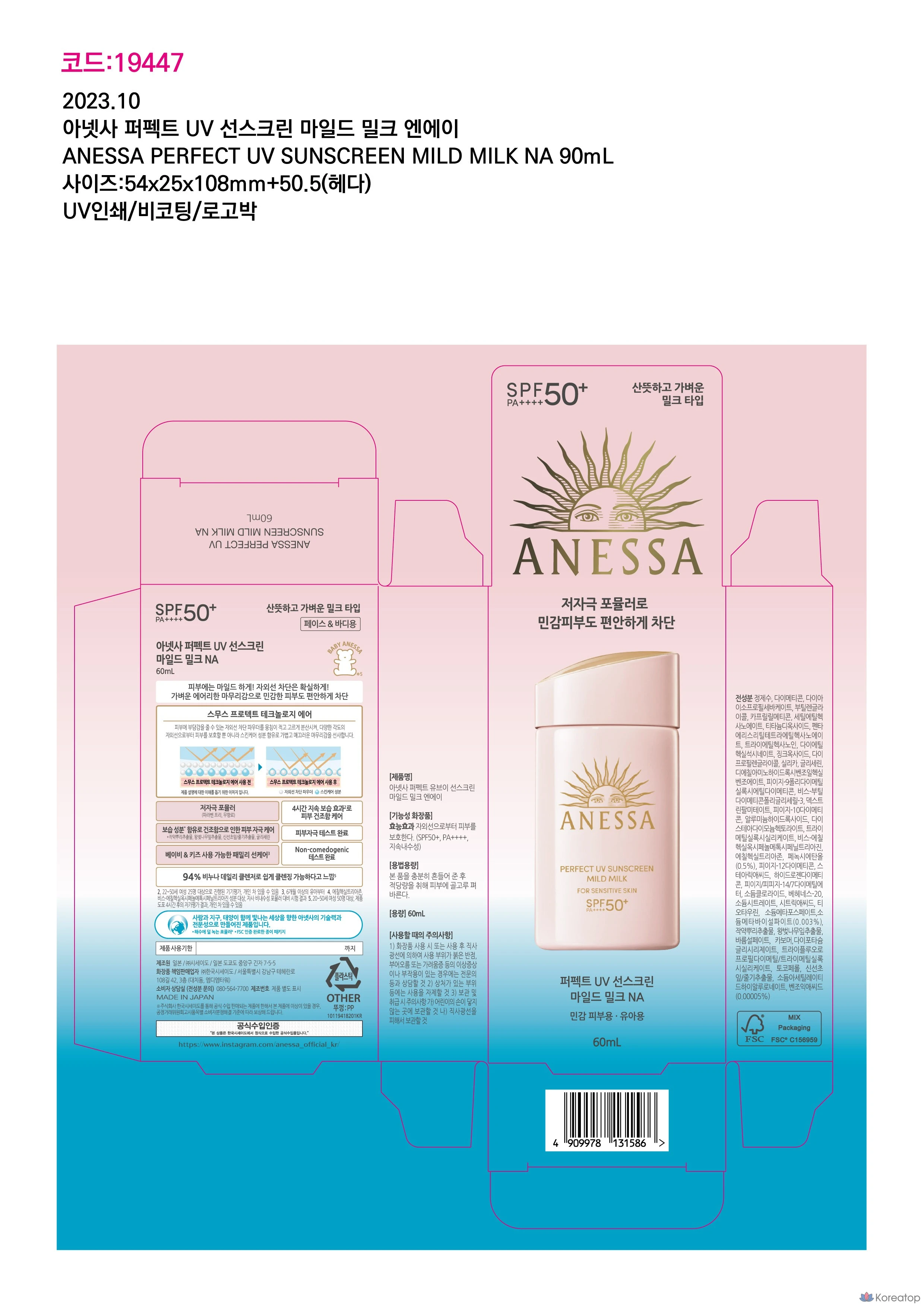 Солнцезащитное молочко Anessa Perfect UV Sunscreen Mild Milk NA SPF50+ PA++++, 60 мл, 1 шт.