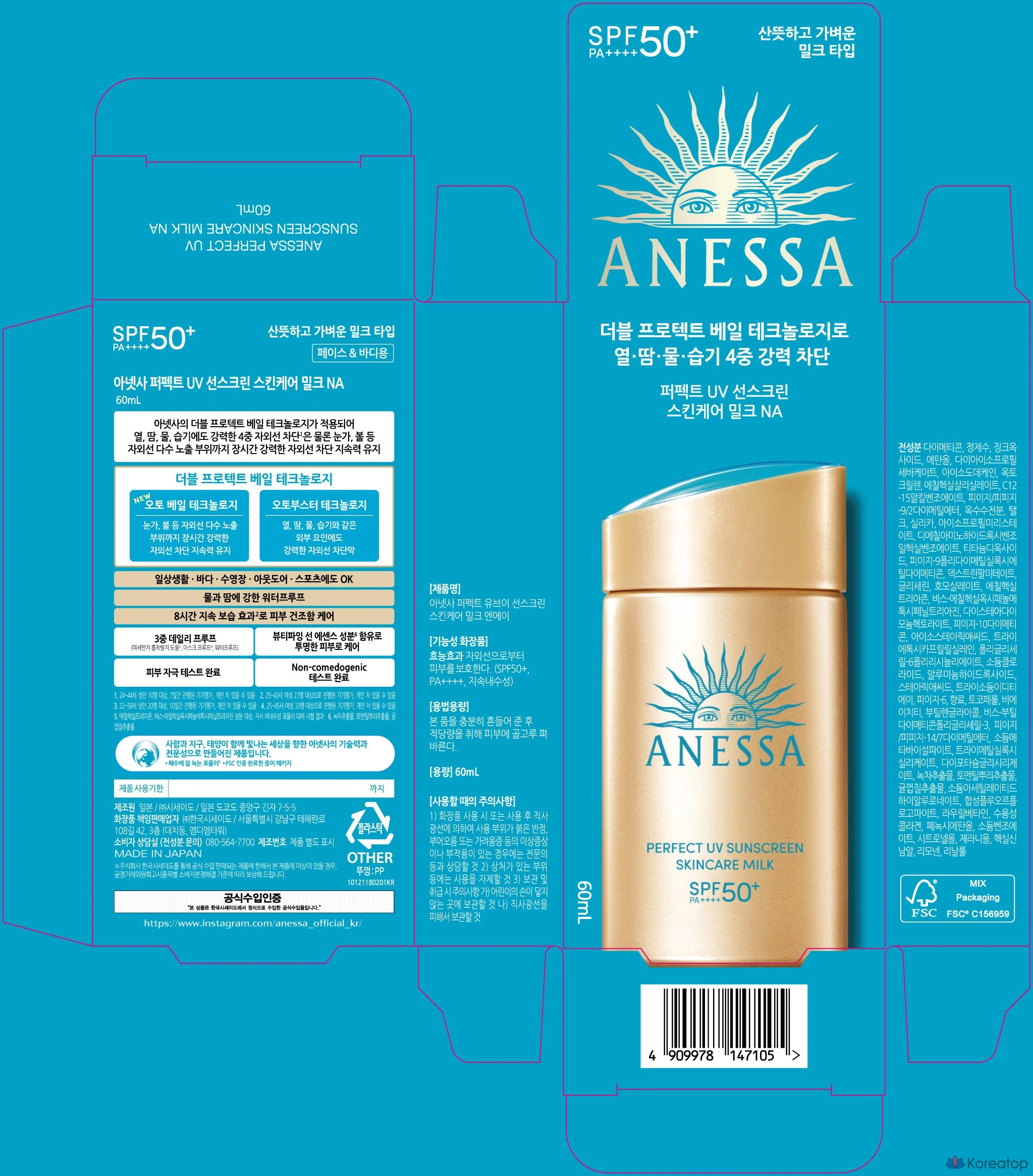 Солнцезащитное молочко для ухода за кожей Anessa Perfect UV Sunscreen Skincare Milk NA SPF50+ PA++++, 60 мл, 1 шт.