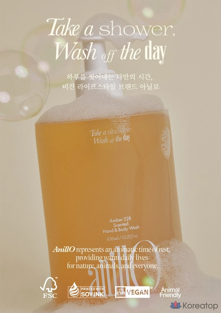 Веганский гель для душа и мытья рук Anillo Amber 528, древесно-цитрусовый аромат, 1 шт., 450 мл