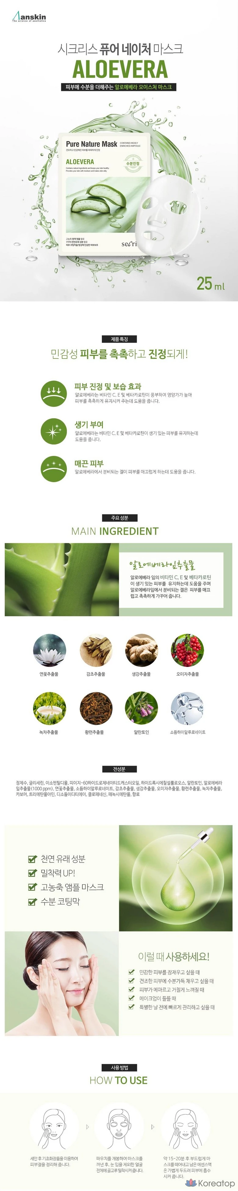 Набор масок для лица Anskin Secret Pure Nature с алоэ вера, 25 мл, 6 шт., 1 шт.