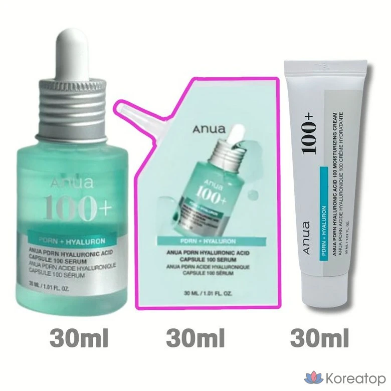 Anua PDRN Hyaluronic Acid Capsule 100 Serum 90ml Special (30 мл основного продукта + 30 мл сменного блока + 30 мл крема PDRN)