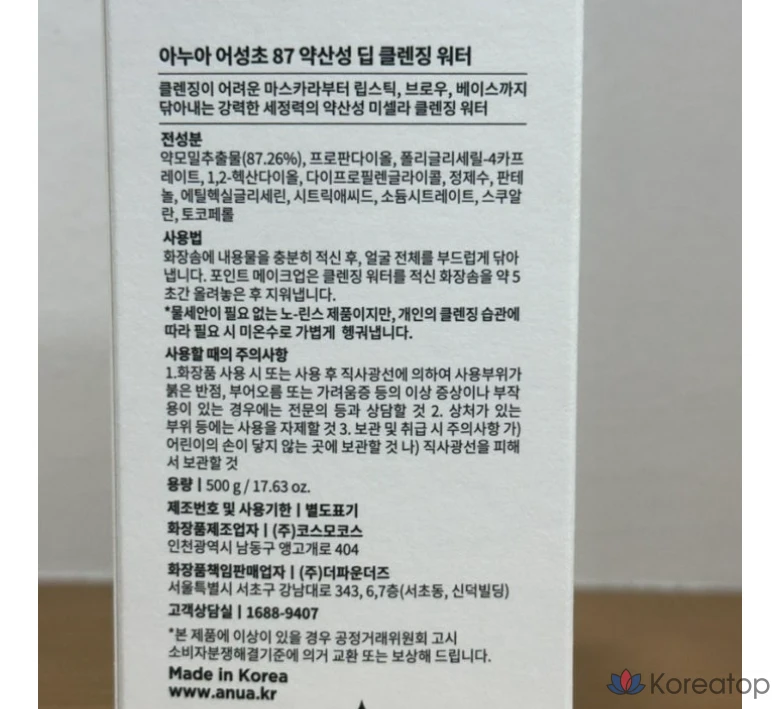 [НОВИНКА] Одношаговое глубокое очищение без воды, Anua Anua Eoseongcho 87 слабокислотная очищающая вода 500 г, 2 шт.