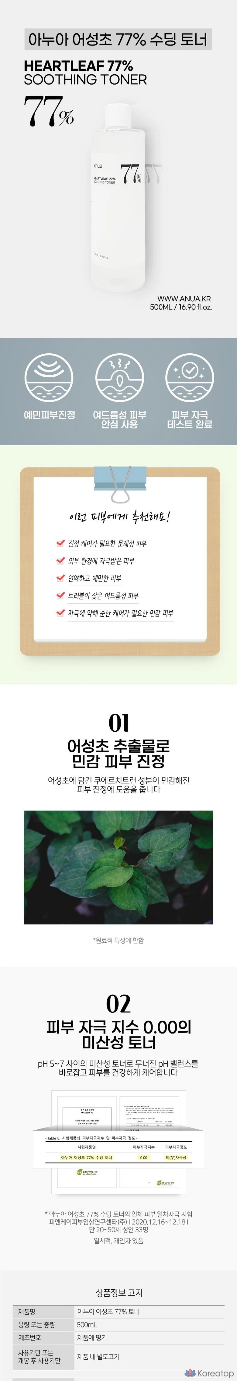 Тонер Anua Eoseongcho 77 Toner 500ml + лосьон Eoseongcho 70 Relief Lotion + ампула Eoseongcho 80 Ampoule 30ml + (подарок) набор масок Eoseongcho Mask Pack, 1 комплект
