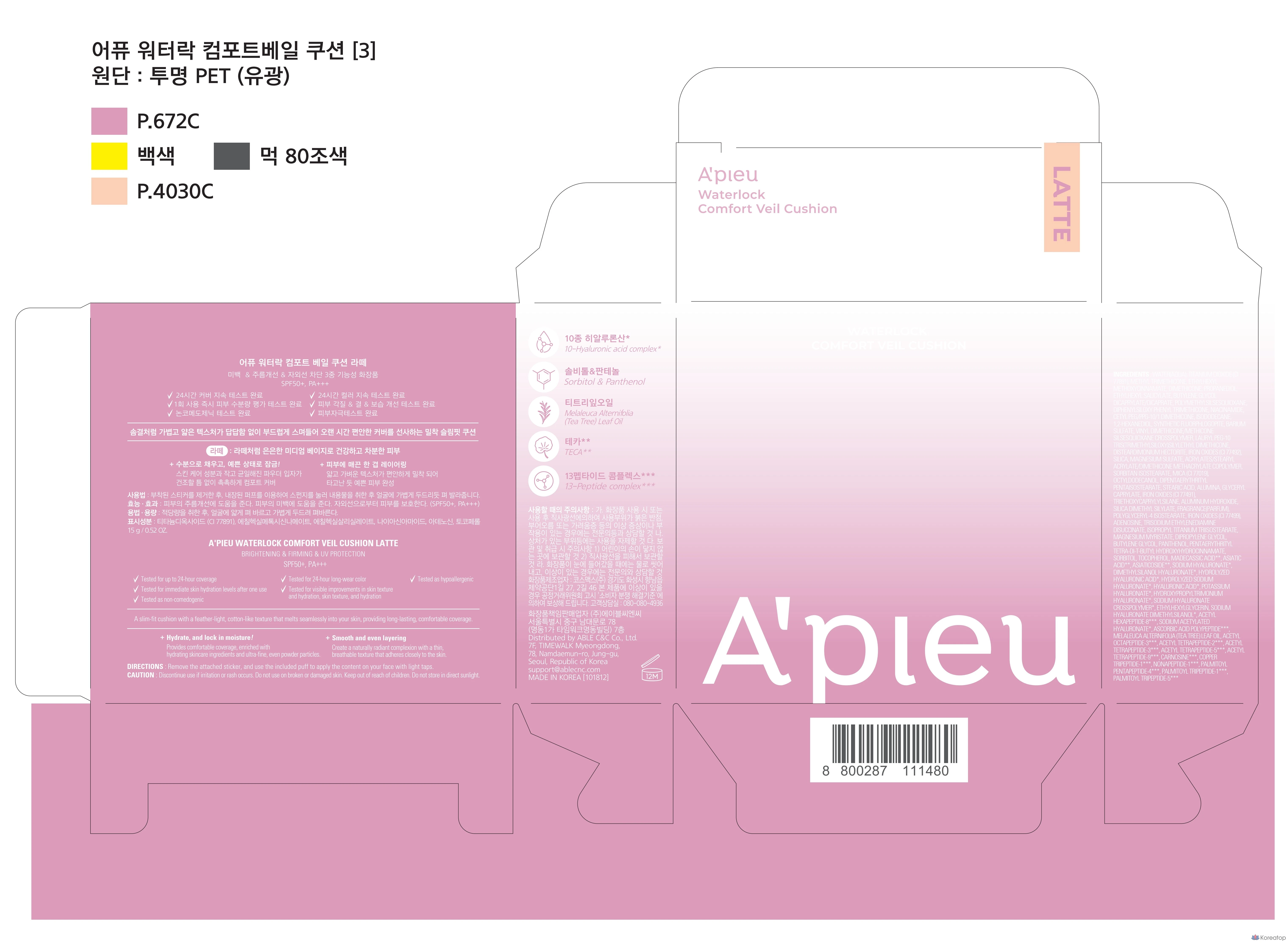 A'Pieu Waterlock Comfort Veil Cushion, 15 г, 1 штука, 21 раковина