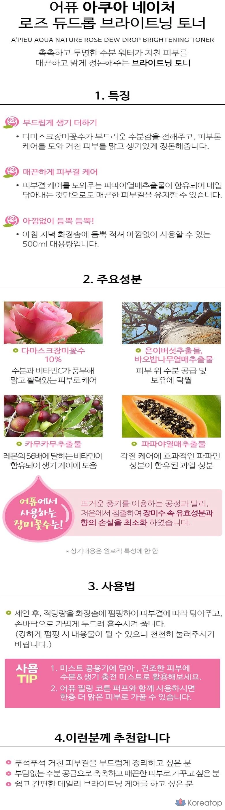 Осветляющий тоник для лица A'Pieu Aqua Nature Rose Dewdrop, 500 мл, 1 шт.