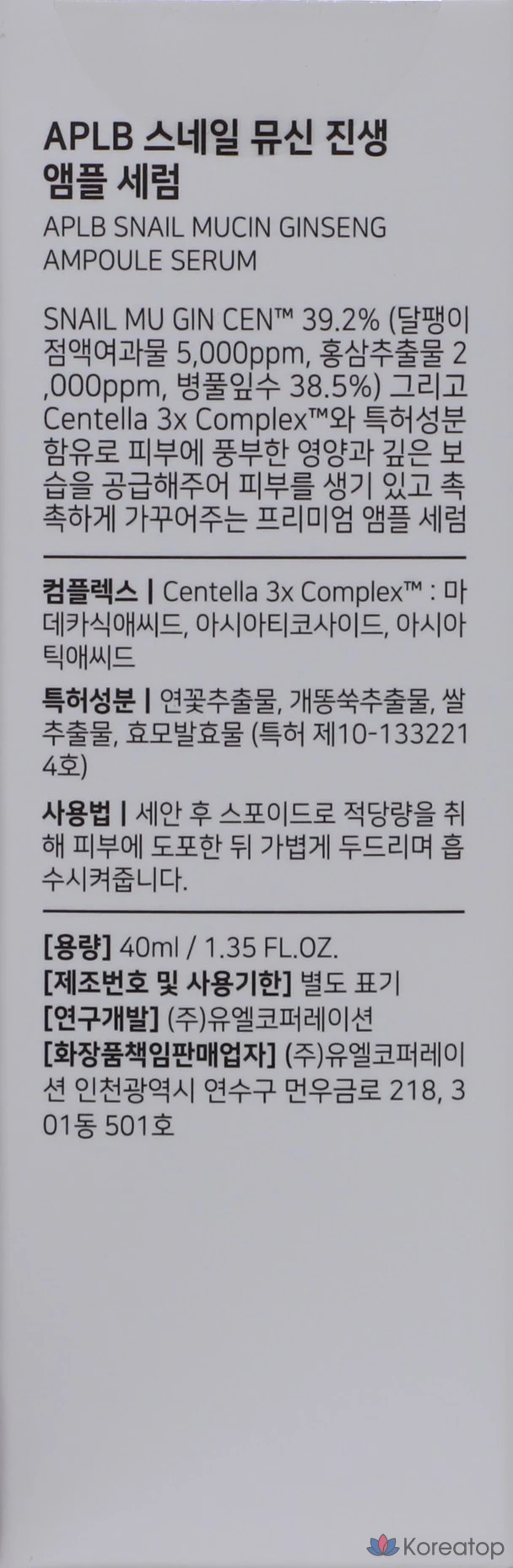 Сыворотка-ампула APLB с муцином улитки и женьшенем, 40 мл, 1 шт.