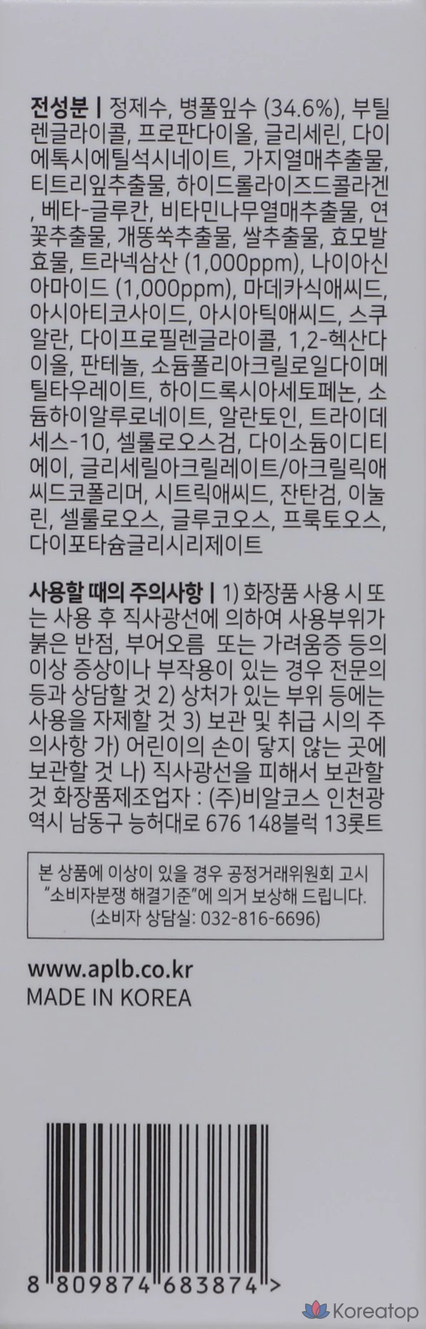 транексамовая кислота (1,000ppm), ниацинамид (1,000ppm), вода из листьев центеллы азиатской (34.6%), гидролизованный коллаген, бета-глюкан, сквалан, гиалуронат натрия, мадекассовая кислота, азиатикозид