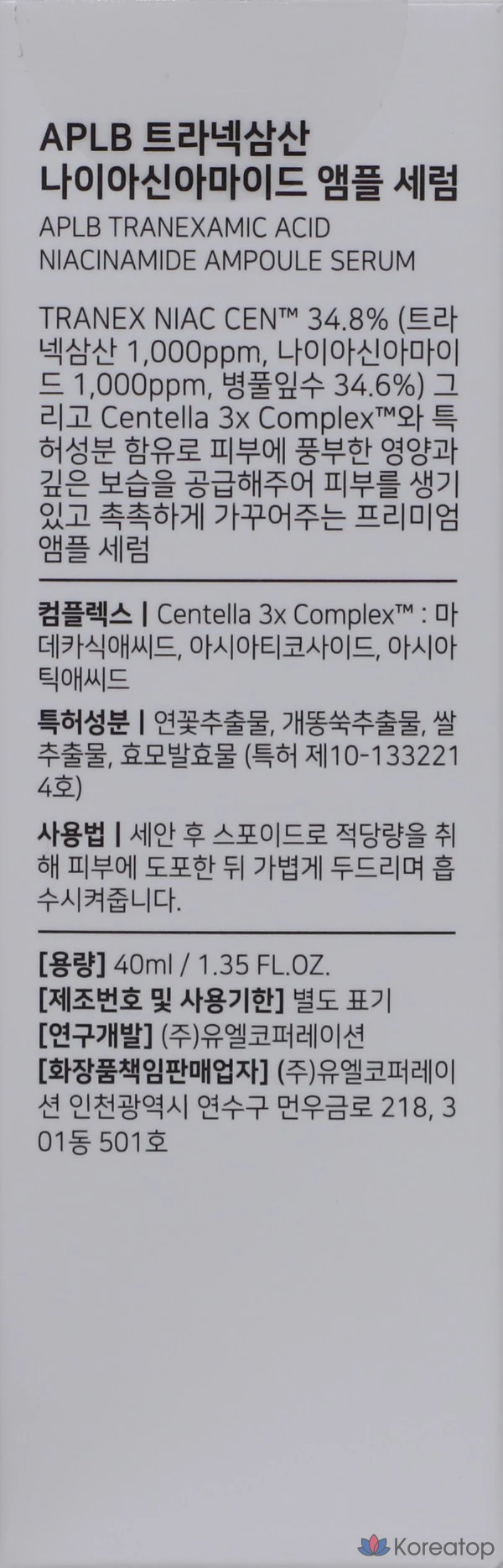 Ампульная сыворотка APLB Tranexamic Acid Niacinamide Ampoule Serum, 40 мл, 1 шт.