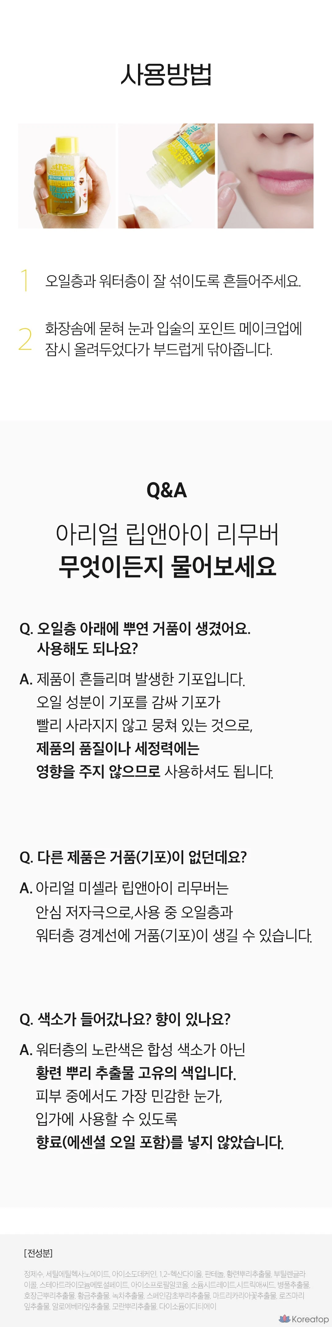 Мицеллярная вода Ariul предназначена для бережного снятия макияжа с глаз и губ, обеспечивая успокаивающий эффект. Благодаря своей формуле, она эффективно удаляет даже стойкий макияж, не вызывая раздражения. Продукт подходит для ежедневного использования и оставляет кожу свежей и увлажненной. Идеальный выбор для тех, кто ценит качество и заботу о своей коже. 🌿