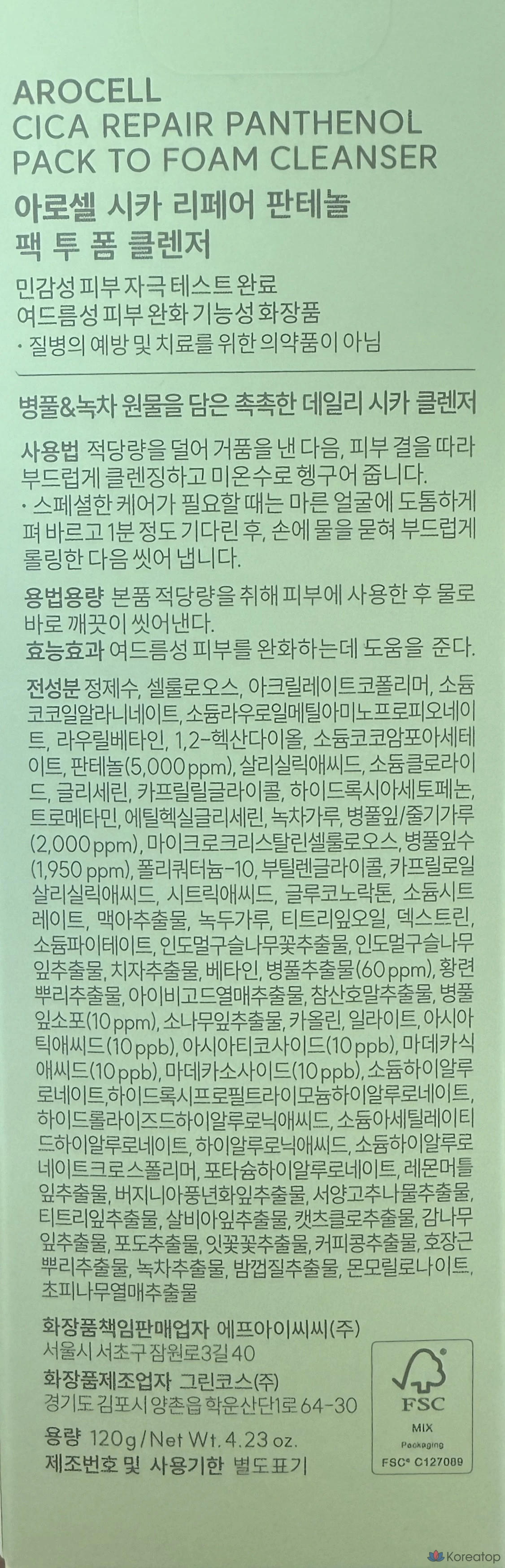 Очищающая пенка для лица Arocell Cica Repair Panthenol Pack to Foam Cleanser, 120 г, 1 шт.
