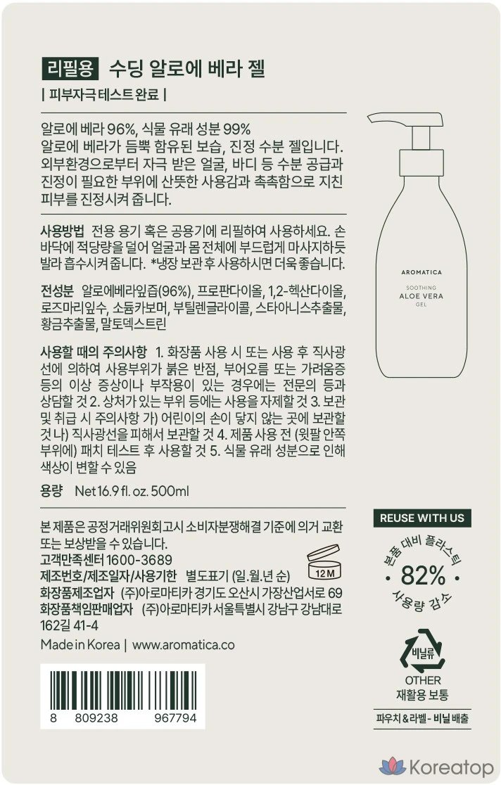 Aromatica успокаивающий гель-наполнитель с алоэ вера, 500 мл, 1 шт.