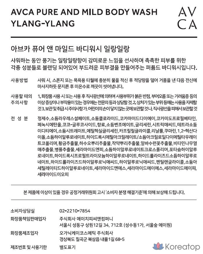 AVCA Pure & Mild гель для душа с иланг-илангом, 800 мл, 1 шт.