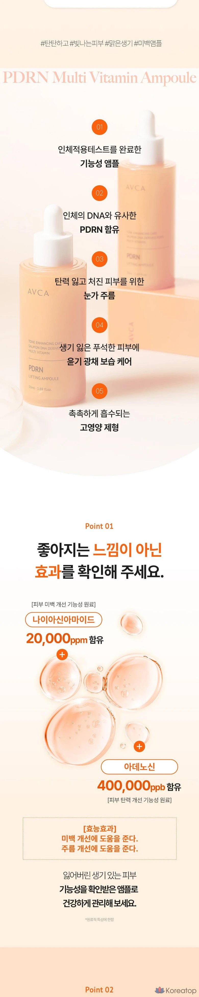 Ампула AVCA PDRN с мультивитаминами для отбеливания и повышения эластичности кожи, 50 мл, 1 шт.