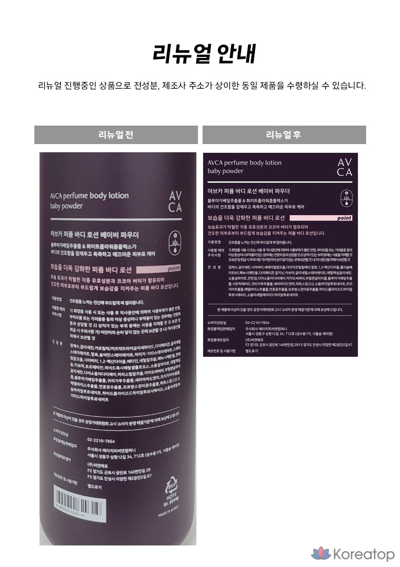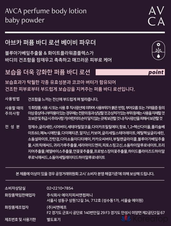 Лосьон для тела AVCA Perfume, аромат детской присыпки, 500 мл, 1 шт.