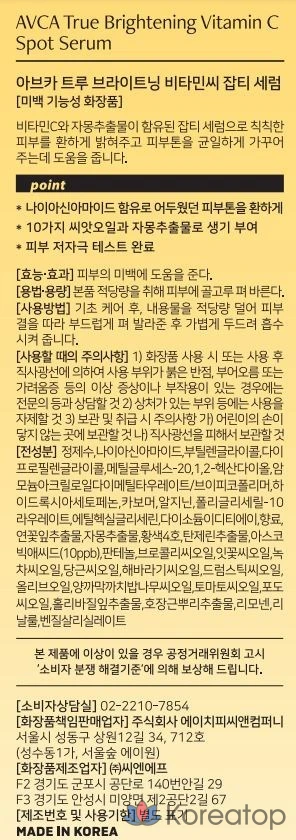 Сыворотка для лица AVCA True Brightening с витамином С, 100 мл, 1 шт.