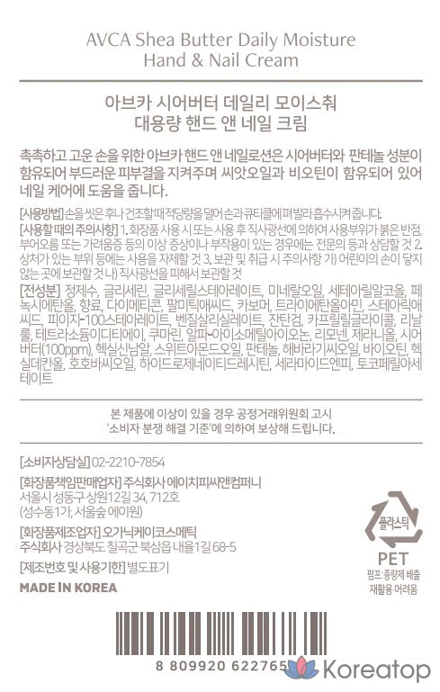 Увлажняющий крем для рук и ногтей AVCA с маслом ши, 1 шт., 300 мл
