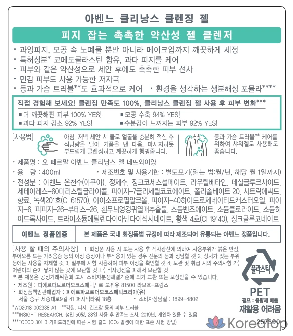 Гель для умывания лица, очищающий, матирующий, для проблемной и жирной кожи Клинанс AVENE, 400 мл + 15 мл