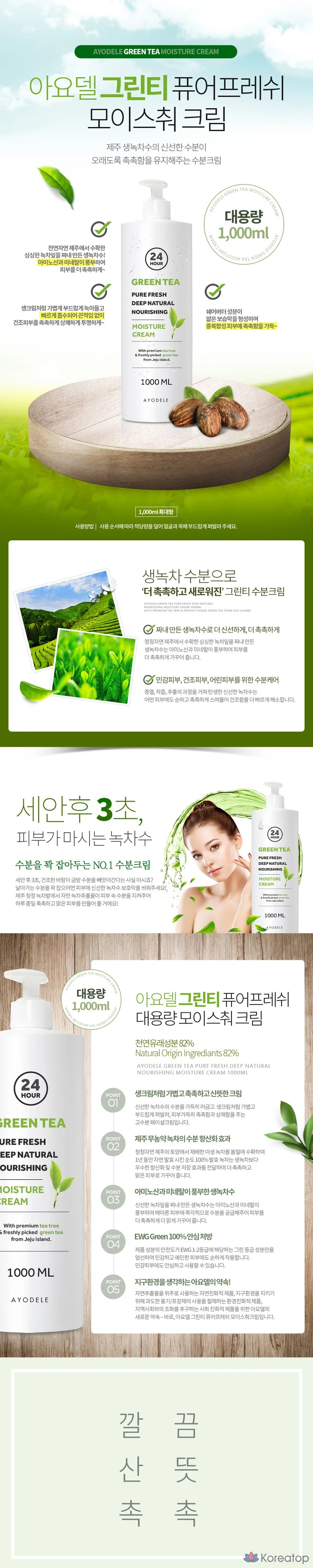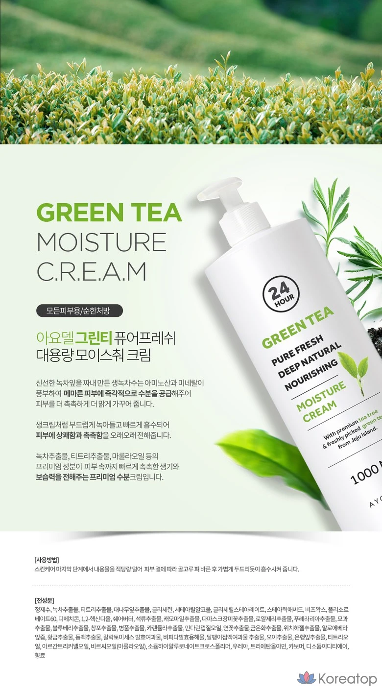 Увлажняющий крем AYODELE Green Tea Pure Fresh, 1 л, 1 шт.